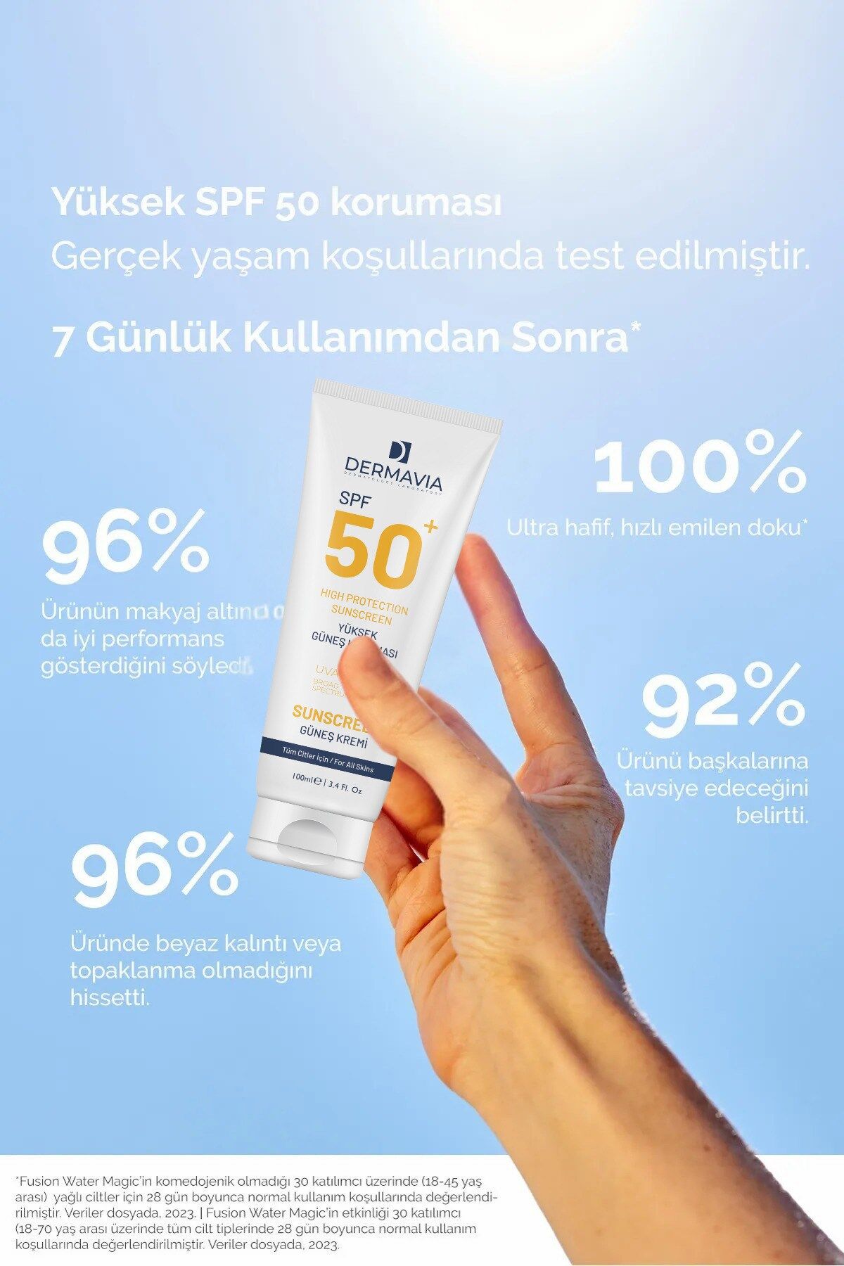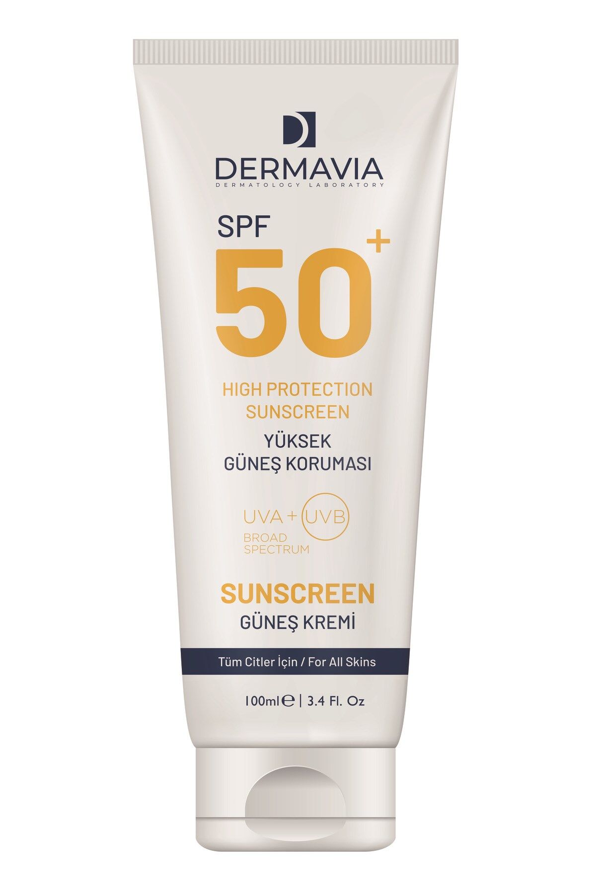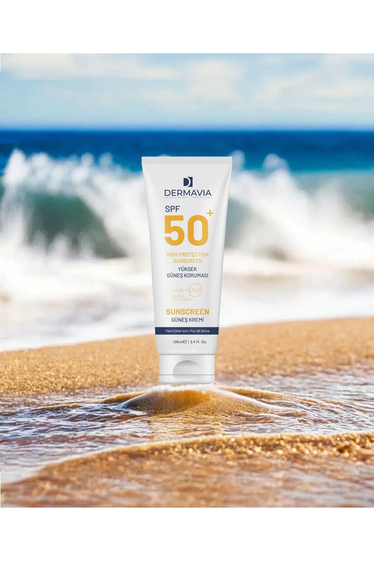 Dermavia SPF 50+ Su Bazlı Güneş Kremi 100 ml - UVA/UVB Koruma, Parfümsüz, Tüm Cilt Tipleri için