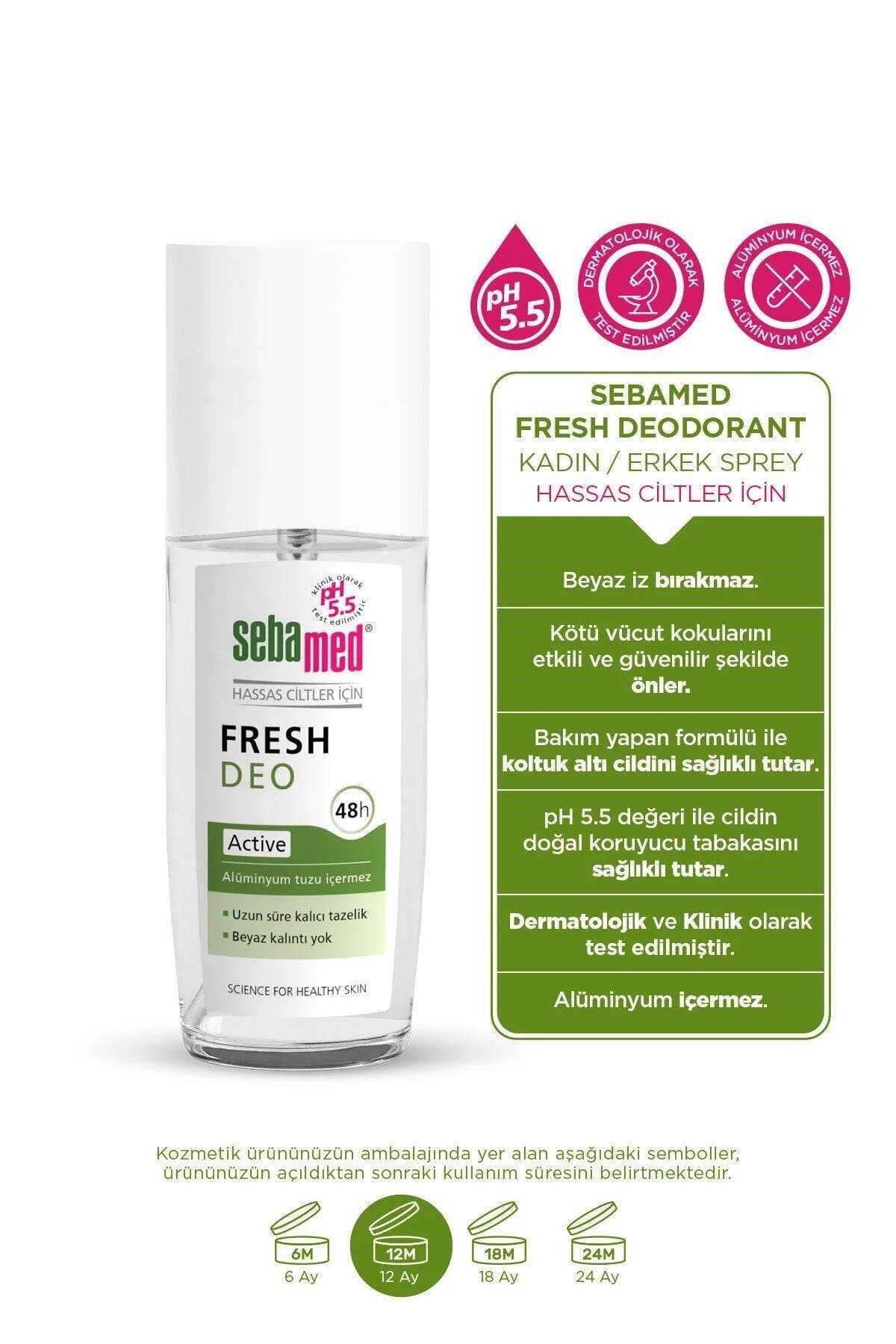 Sebamed Fresh Activa Ferahlık Deo 75 ml Hassas Ciltler İçin Aluminyumsuz 48 Saat Koruma