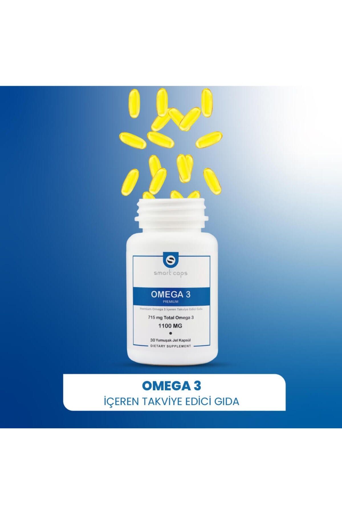 Smart Caps Omega3 Premium , 1 kapsülde 1100mg saf balık yağı, 715mg omega içermektedir.