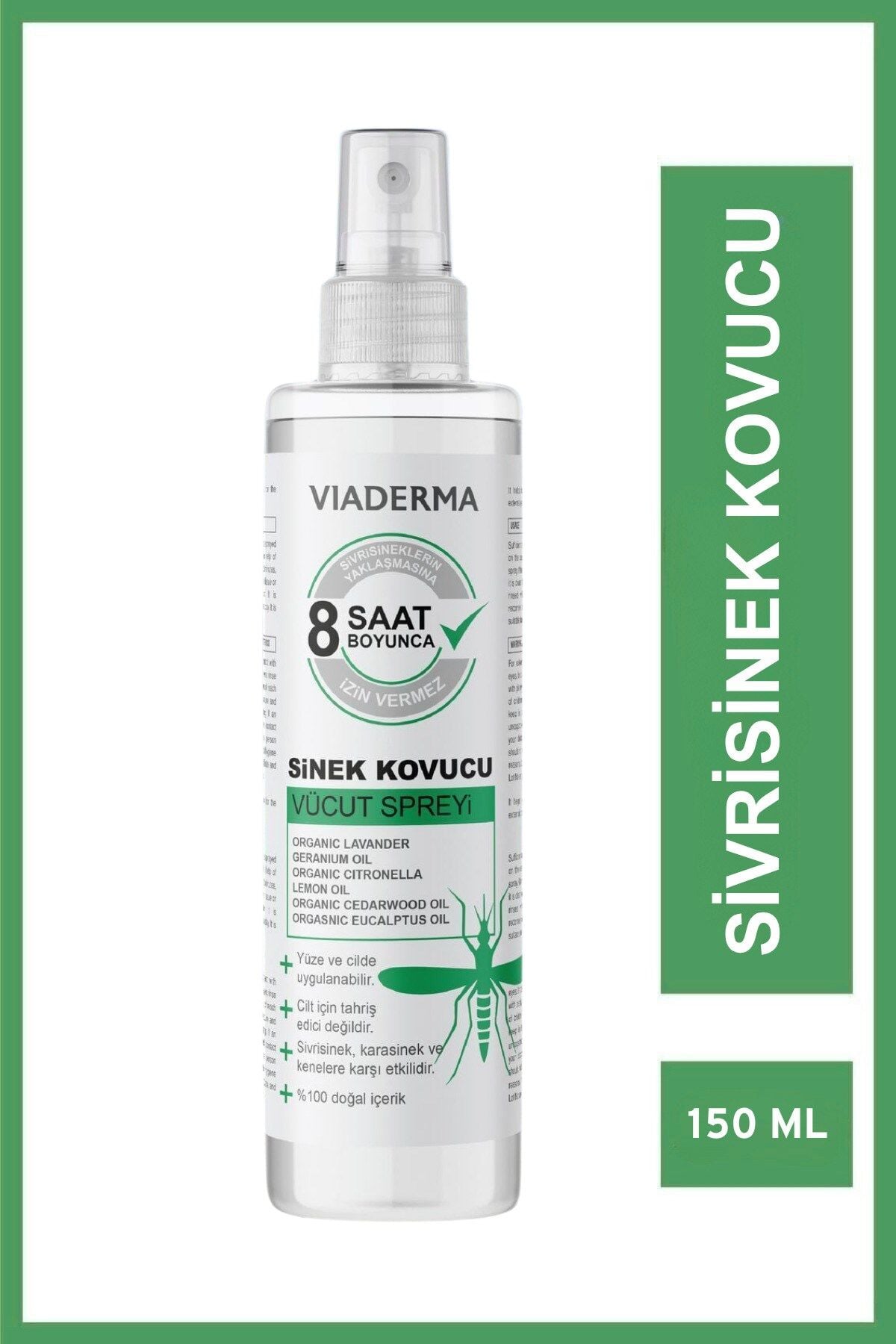 Viaderma Doğal Sinek, Sivrisinek, ve Kene Kovucu ve Koruyucu - Sprey Aile Boy 150 ml - Hoş Kokulu