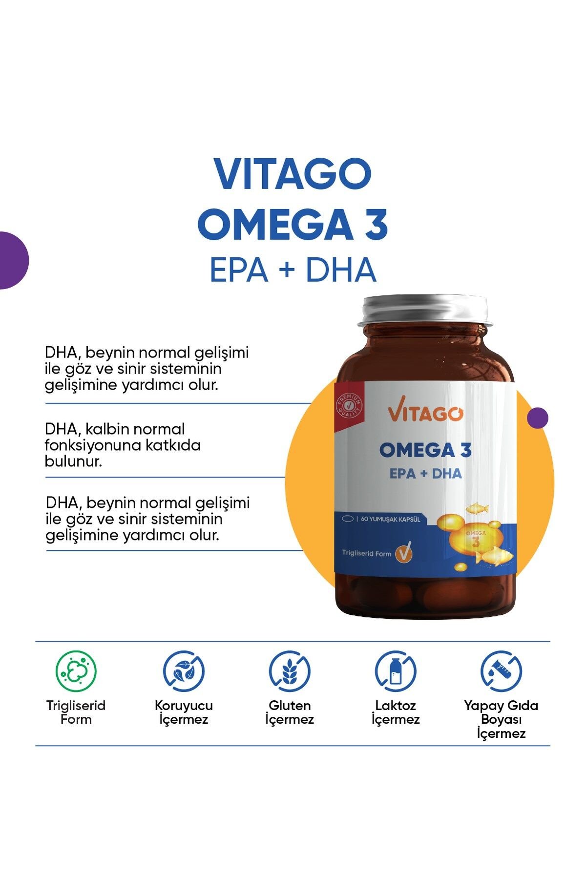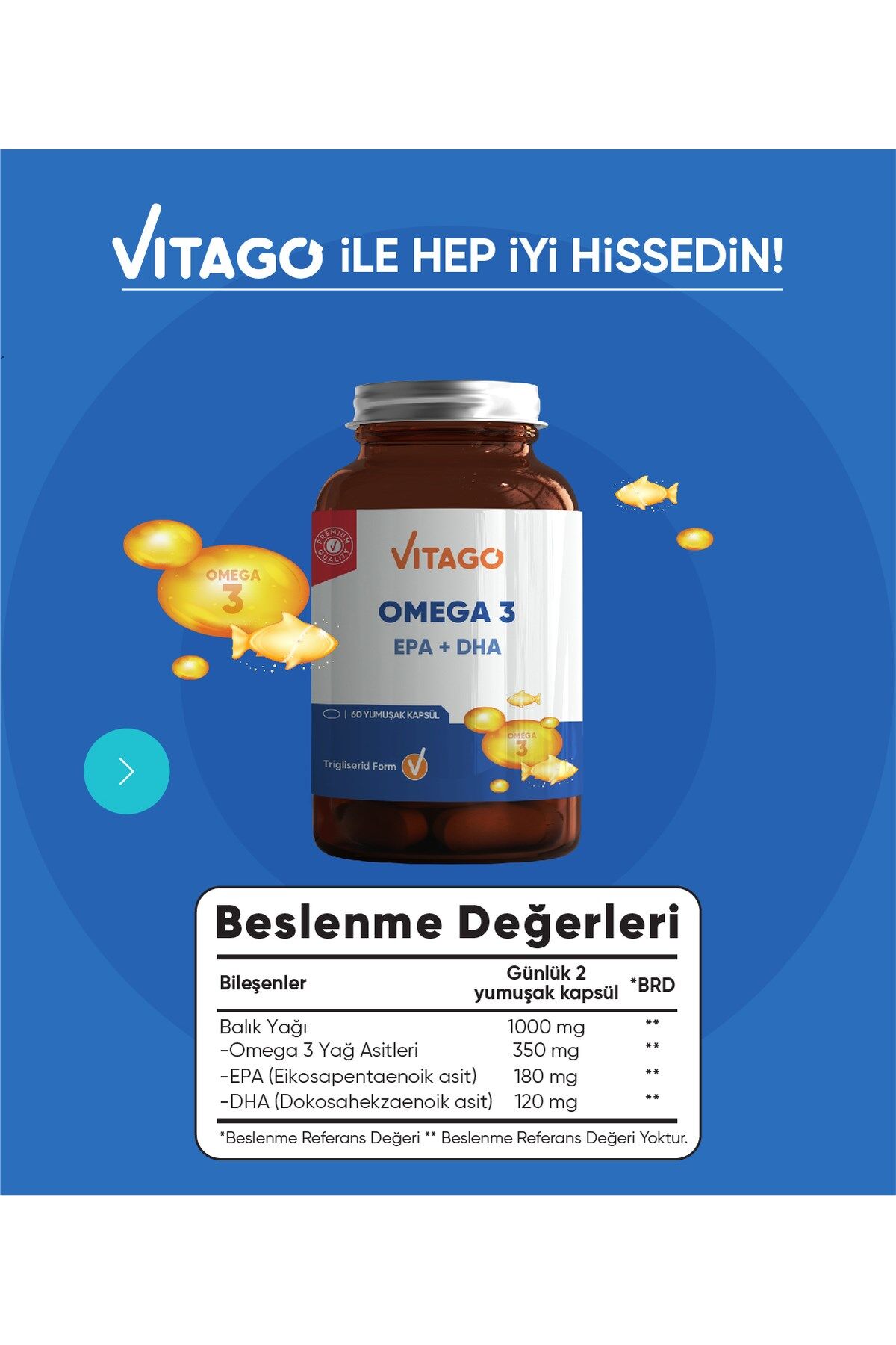 VİTAGO Premium Omega 3 İçeren Softjel Takviye Edici Gıda 60'lı