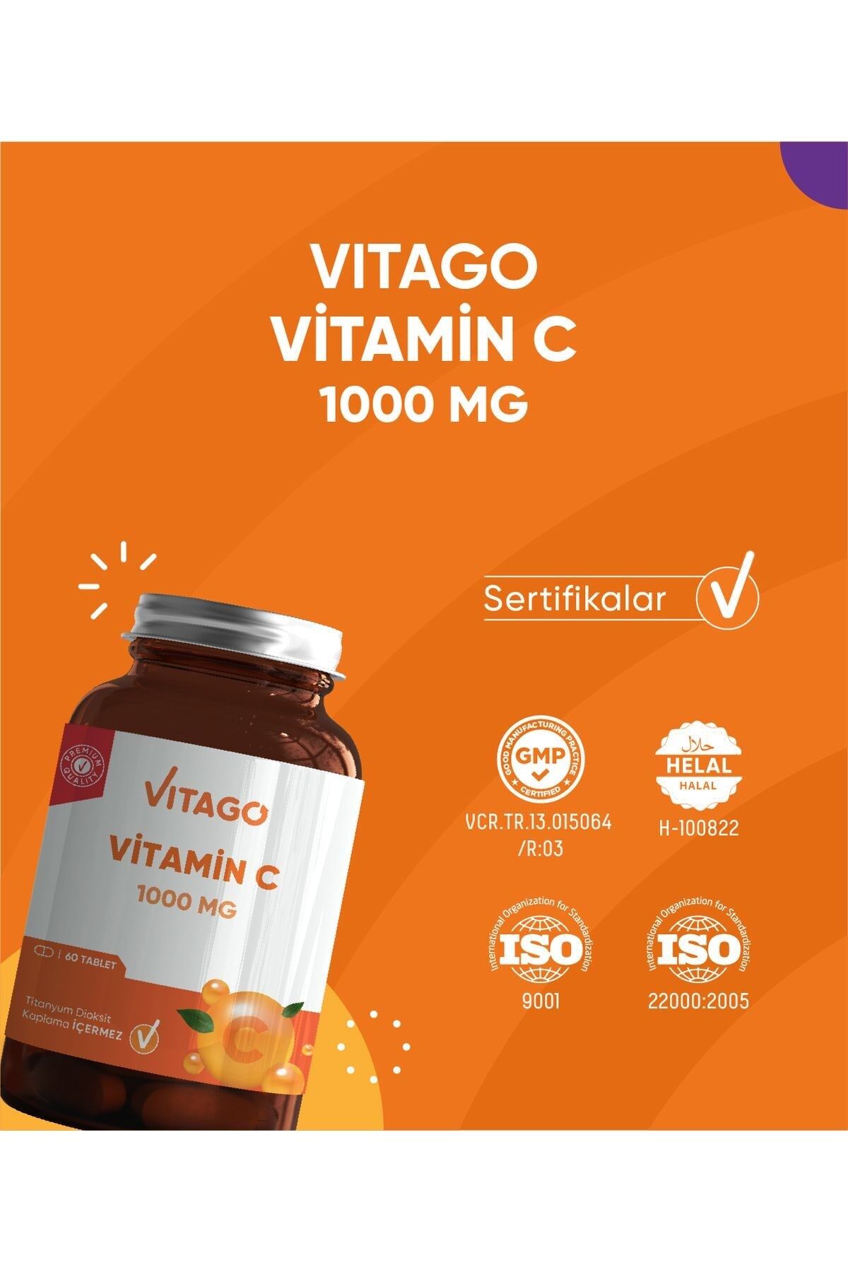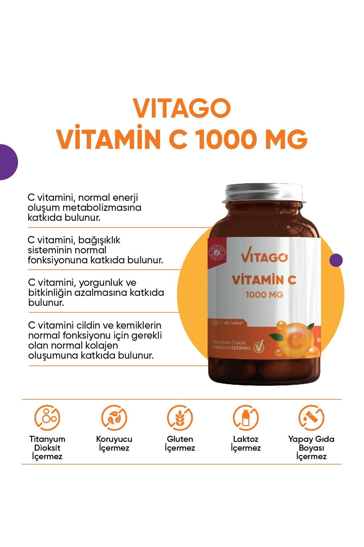VİTAGO Premium Vitamin C 1000 MG İçeren Tablet 60'lı