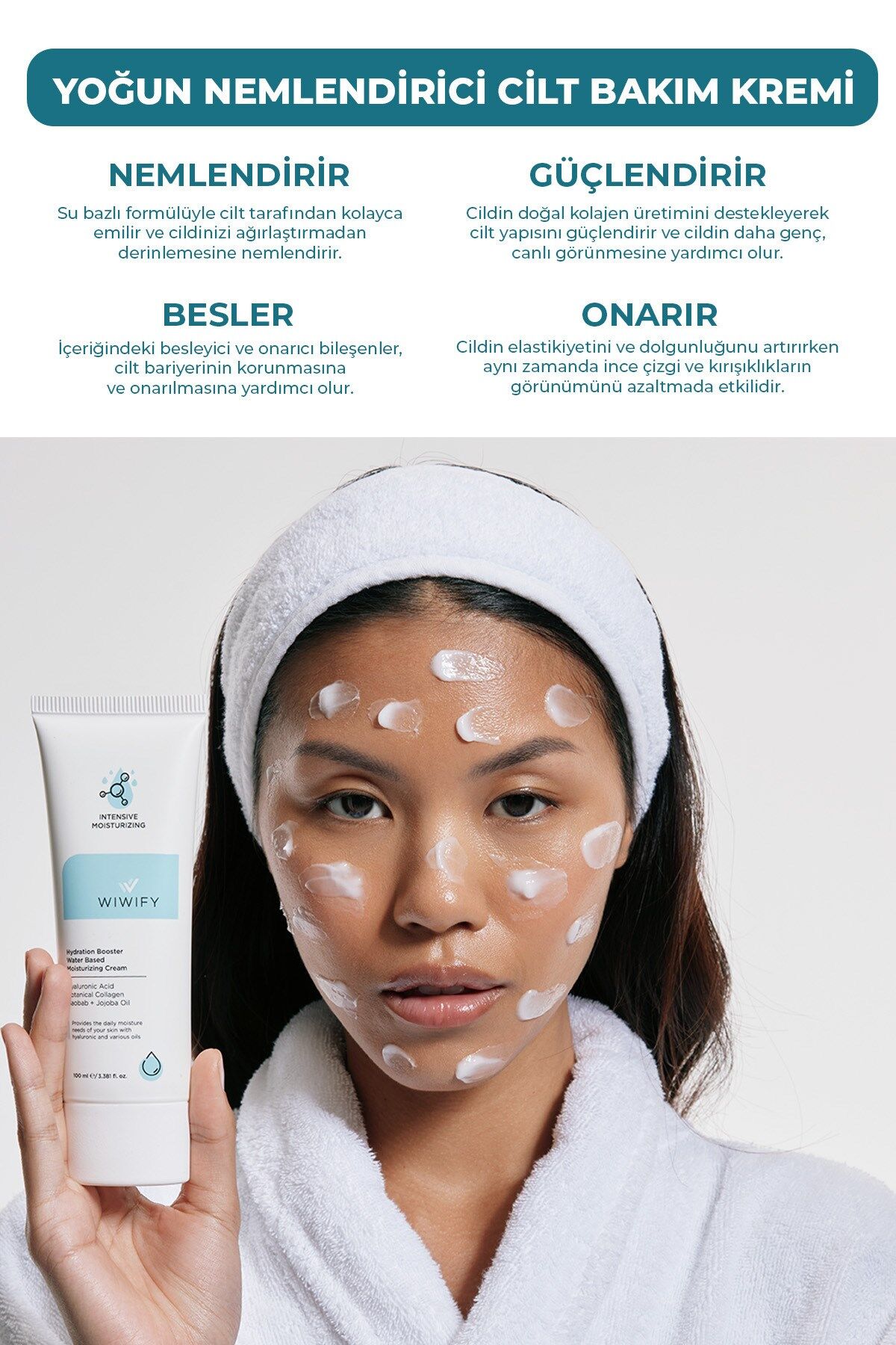 - WIWIFY Su Bazlı Yoğun Nemlendirici Yüz Kremi 100 ml - Tüm Cilt Tipleri - 24 Saat Etkili Cildiniz her gün derinlemesine nemlenmeyi hak ediyor! WIWIFY Su Bazlı Yoğun Nemlendirici Krem, hafif ama güçlü formülüyle cildinize anında ferahlık ve uzun süreli nem kazandırır.