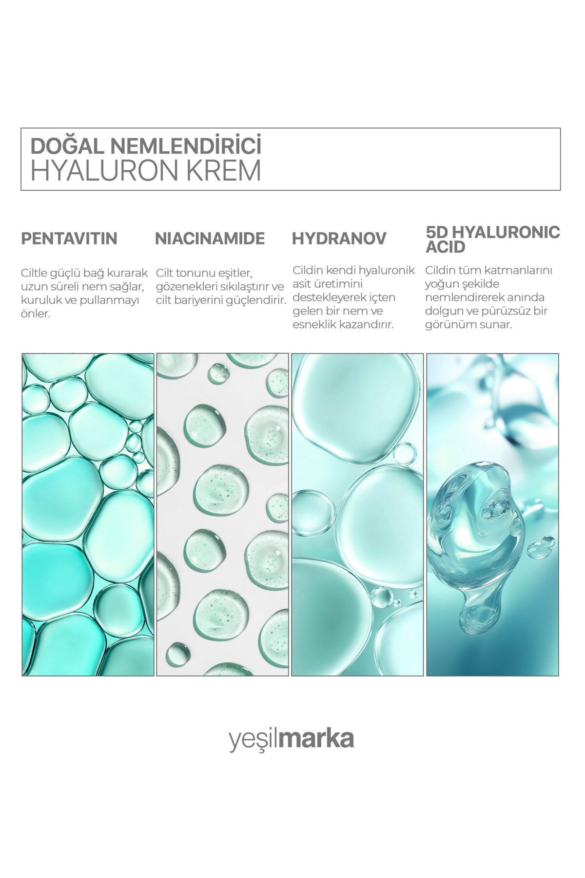 Yeşilmarka Su Bazlı Nemlendirici Yüz Kremi Hyaluronik Asit Ve Dolgunlaştırıcı Etki Ile 72 Saat Nem